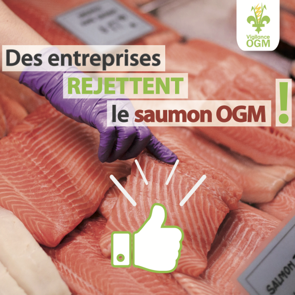 Montréal, le 12 octobre 2018 – Vigilance OGM est heureuse de dévoiler une liste d’entreprises qui s’engagent à ne pas acheter ou vendre du saumon génétiquement modifié (GM), ni produire aucun de leurs produits à base de ce saumon GM de la compagnie Aquabounty. En effet, après avoir découvert que ce saumon GM était déjà présent sur le marché québécois, Vigilance OGM avait contacté de nombreuses entreprises afin de connaître leurs positions.